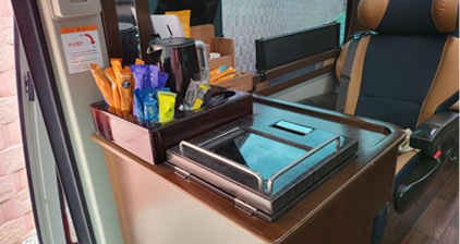 대형버스에 우등고속버스와 동일한 좌석배치로 재배치하여 좌석 간 간격이